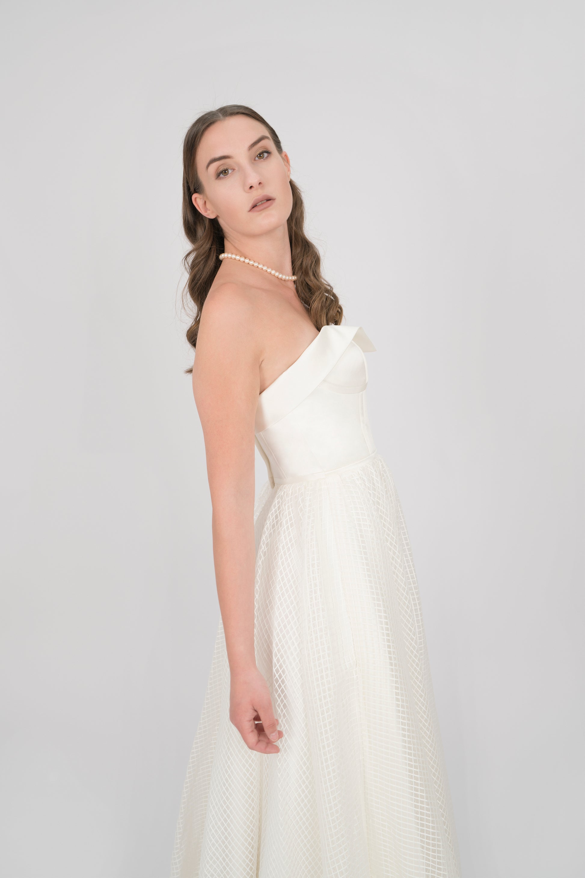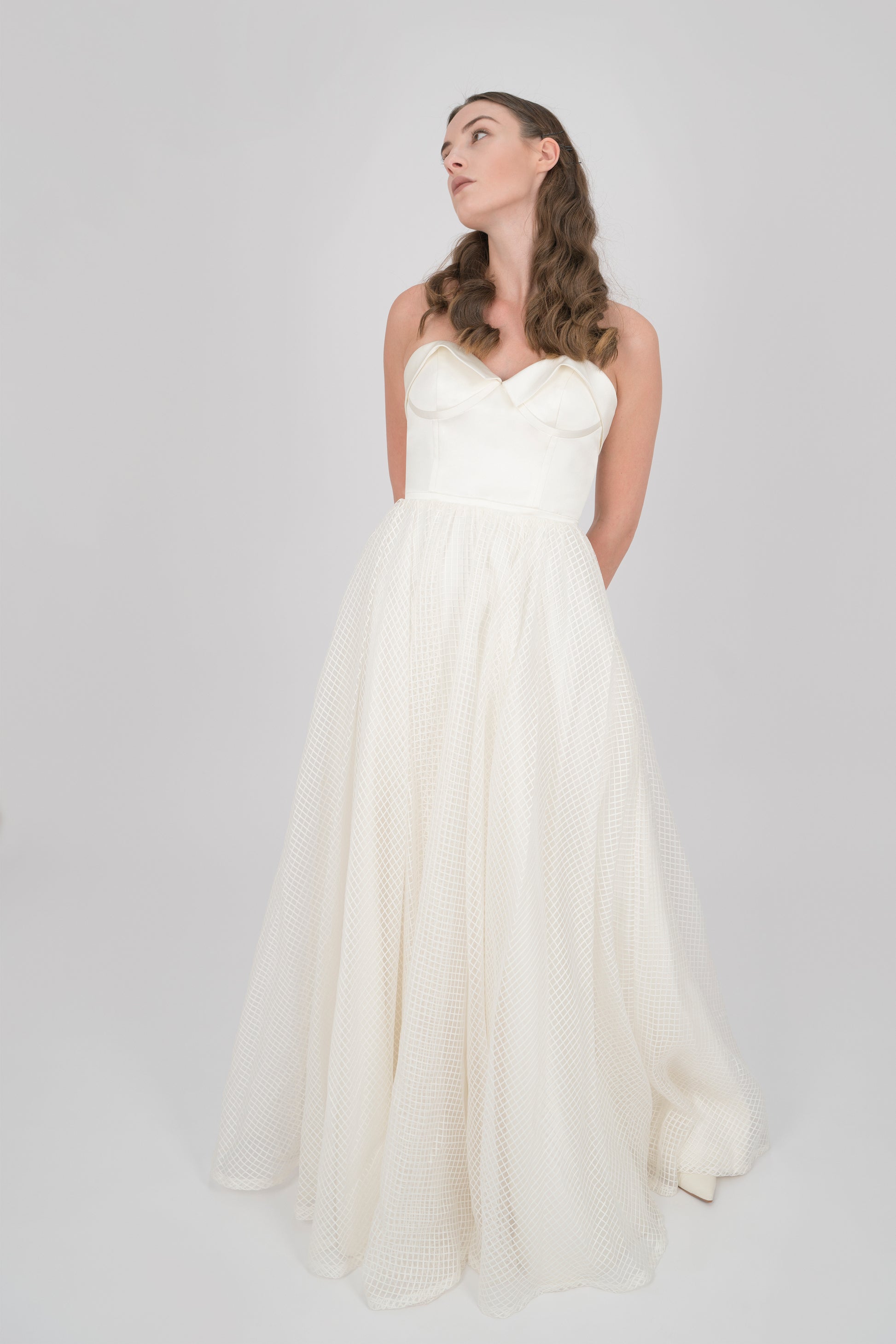 MIXED SATIN AND SILK ORGANZA WHITE